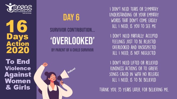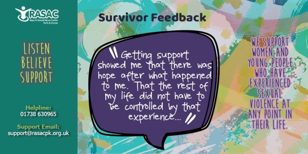 On this page you will find beautiful, inspiring, and challenging words, art and campaigning contributed by survivors who have engaged in support at RASAC P&K, and other survivors who support us. Please be aware that some of the contributions may be hard to read as they can express difficult feelings. If you have something you would like to contribute to, let us know. Lastly a big thank you to everyone who's words, art and campaigning has contributed to this page. You inspire us.