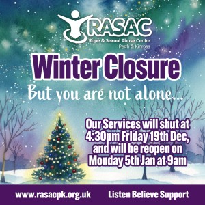 We know the holidays can be a hard time for some survivors, but you can still find support and a listening ear on the Rape Crisis Scotland Helpline every evening from 5pm to midnight other than Christmas Day and Hogmanay when it on 5pm - 11pm.